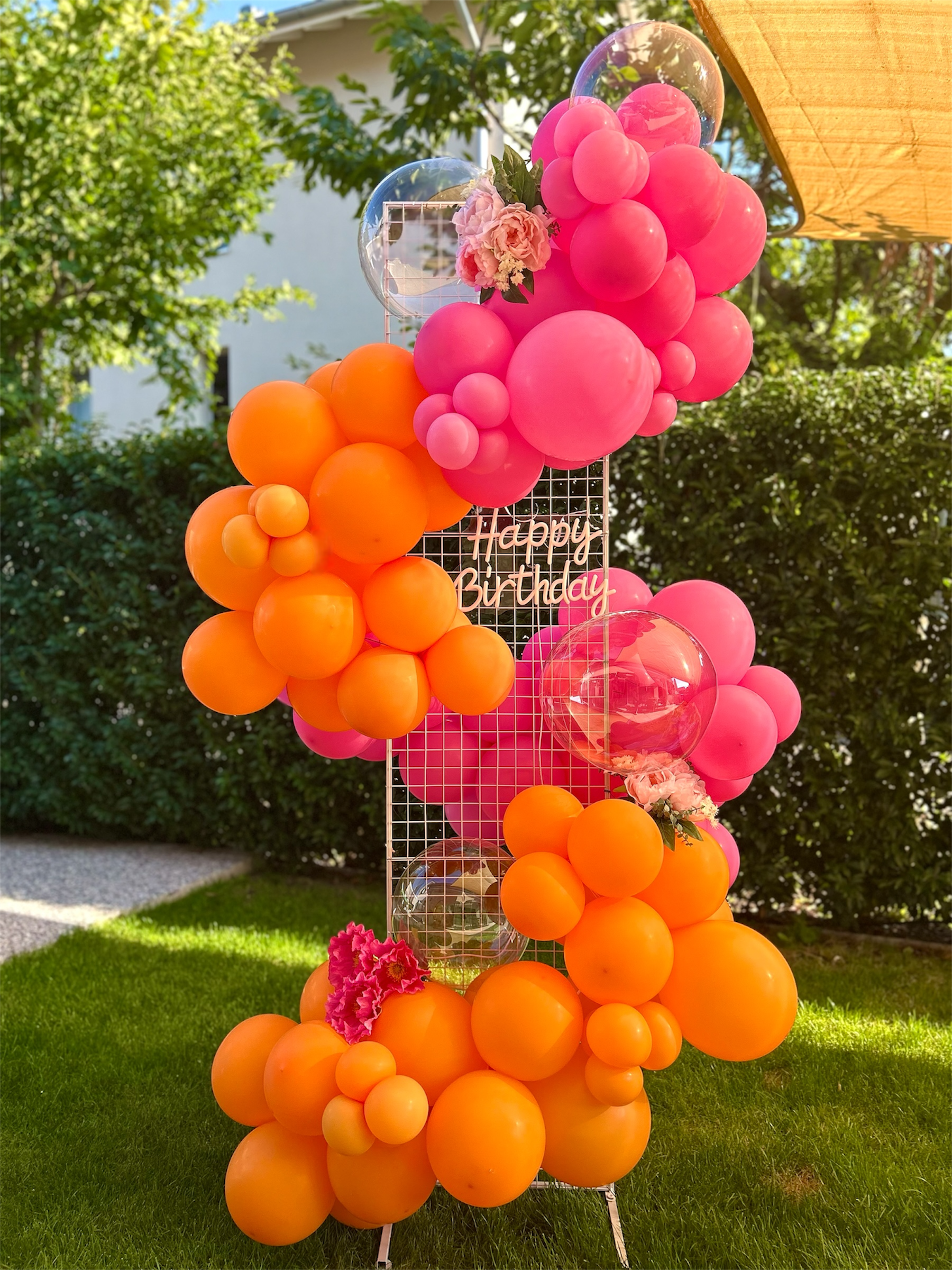 Als Familie mit zwei Kids und zwei Hunden, gibt es bei uns immer wieder Grund zu feiern, und was wäre eine Feier ohne Ballons... Als ich im Februar 2024 mein kleines Unternehmen gegründet habe, wusste ich, dass ich mit den Ballons ein Lächeln ins Gesicht meiner Kunden zaubern wollte. Jeder Ballon erweckt Emotionen, begeistert Jung und Alt und zieht alle Blicke auf sich. Angefangen bei einfachen Bubble Ballons bin ich nun bei liebevoll gemachten Ballonarrangements angekommen, die individuell auf eure Bedürfnisse abgestimmt werden.